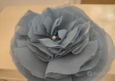 spilla di seta naturale. pari a nuovo. dietro c'è il passante o per il cerchietto da usare come accessorio per i capelli.... per la cintura da usare in vita.... per un foulard da usare sul collo come la collana... da attaccare al cappello da cerimonia.....il limite è solo la vostra fantasia. spilla e artigianale quindi è unica , un'altra non c'è da nessuna parte, molto originale.
