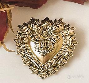 Meravigliosa spilla DOLCE & GABBANA della Collezione “Devotion” con cuore sacro, in acciaio dorato, nuova mai indossata, misura larghezza cm 4.5.