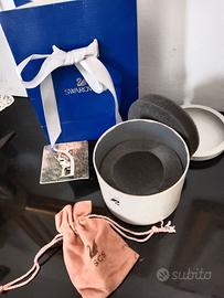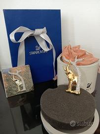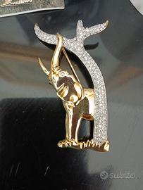 SPILLA SWAROVSKI originale nuova confezionata in struttura metallo dorato ed argentato dimensioni cm: 7 x 3,8 in vendita da collezionista, ritiro a mano a Milano uscita metropolitana linea verde Udine