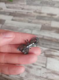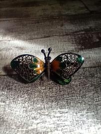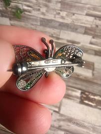 Spilla farfalla in filigrana argento 800, in parte smaltata, vero vintage, in condizioni come da foto.