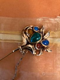 Spilla ferma fourlard con pietre dure mai usato