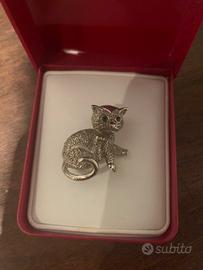 Vengo partivolare spilla vintage a forma di gatto con piccole pietre verdi negli occhi come in foto