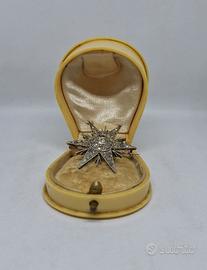 Da collezione privata, cedesi particolare spilla da donna Trilogy in oro bianco antico 9 kt con incastonati diamanti taglio antico europeo con lavorazione a traforo. Pregiata manifattura italiana originale fine ' 800 - venduto nella sua splendida scatola originale. le foto pubblicate si riferiscono esclusivamente agli oggetti realmente in vendita che ne evidenziano il perfetto stato di conservazione - non esitate assolutamente a contattarmi per richiedere ulteriori particolari o foto piu' dettagliate degli oggetti in vendita - guardate anche le altre mie aste e scegliete liberamente le modalita' di spedizione e di pagamento - trattasi di trattativa tra privati, quindi vige la regola " visto e piaciuto " - gli oggetti viaggiano a rischio del cliente ( possibile concordare anche spedizione assicurata ) - e' previsto uno sconto sulle spese di spedizione nel caso di acquisto contestuale di piu' oggetti. nel caso di offerte dall'estero si prega di contattare preventivamente per definire i costi di spedizione - affaristi e perditempo sono vivamente pregati di evitare offerte e commenti stupidi - Art. 2026/008