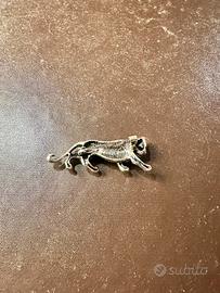 Spilla elegante e grintosa a forma di leopardo in metallo lucido.