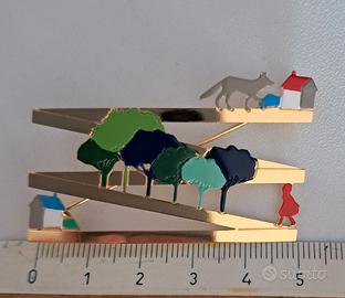 Spilla Les Nereides della serie Cappuccetto Rosso in ottone placcato oro fino e smalto Con confezione originale