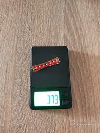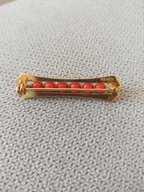 SPILLA ORO GIALLO 750 E CORALLO, PESO 3,73 GR, LUNGHEZZA 3,8CM