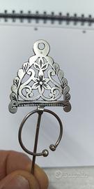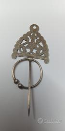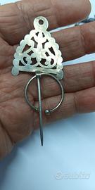 È una " Fibula " Berbera , un Tipo di Spilla Tradizionale Utilizzata per Fissare gli Abiti. È una " Fibula " Berbera ( Chiamata Anche Tizerzai ), un Tipo di Spilla Tradizionale Utilizzata dalle Donne Amazigh ( Berbere ) Principalmente nel Nord Africa, Come il Marocco o L' Algeria, per Fissare Abiti o Scialli. È Realizzato a Mano, Probabilmente in Lega D' Argento o Metallo Simile. La Spilla è in Perfette Condizioni.