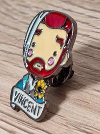 in questa spilla van Gogh è rappresentato con il classico girasole e l'orecchio fasciato, bellissimo da tenere ed esibire ogni giorno sull'abbigliamento o semplicemente come oggetto da collezione.