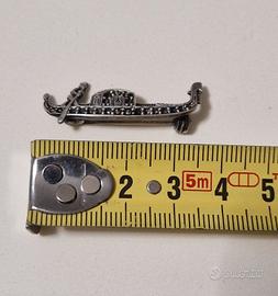 Bellissima spilla vintage a forma di gondola veneziana, realizzata in argento 925. Misure in foto. MOM#