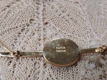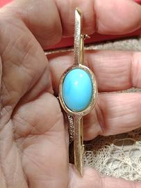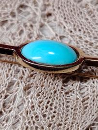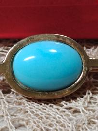 Bellissima spilla firmata Bijoux Cascio, con pasta di turchese su metallo dorato anallergico