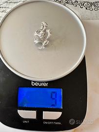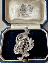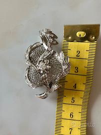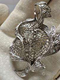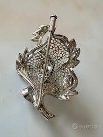 Spilla vintage lavorazione in formato filigrana in oro bianco 18k con diamanti taglio brillante Peso 9 g