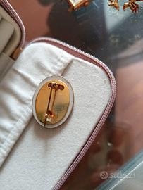 Spilla vintage anni 50 , in porcellana dipinta a mano raffigurante iniziale lettera E, in metallo, condizioni buone, lieve rigatura dietro visto il periodo storico
