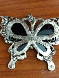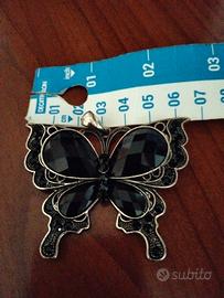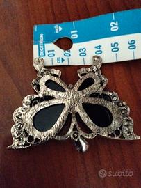 Spilla Vintage Farfalla Cristalli Neri e Strass –