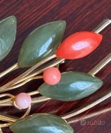 Spilla vintage in corallo e giada