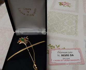 Creato da Laura Biagiotti, è un gioiello dorato con decorazioni di petali colorati, ispirato ai modelli Liberty.