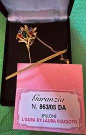 Spillone Laura Biagiotti 1980 con scatola originale, dorato in oro 24K stile Liberty.