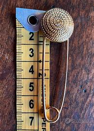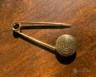 Bellissima spilla vintage in metallo dorato con una spirale che richiama le culture antiche. Realizzata in Italia, è stata acquistata da mia madre negli anni '80 per decorare una gonna scozzese e non è mai stata usata! Può essere utilizzata come spilla da cappotto o da collo, il colore è oro brillante, la chiusura è resistente e pesante. Le misure e il peso in grammi sono visibili in foto. #spillavintage #spillone