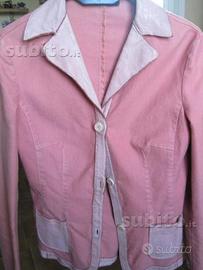 originale giacca Preview Milano in cotone rosa con profili di pelle originale rosa chiaro