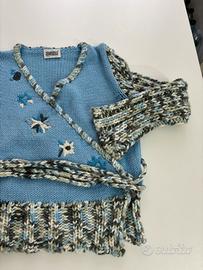 Puoi vedere tutte le misure in cm di seguito comunque veste ogni taglia perché incrociata e allacciata sul fianco: spalle cm 32 lunghezza cm 48, manica cm 51 petto e larghezza fino in fondo cm 45