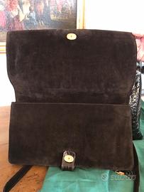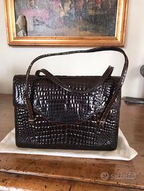 La terza e’ una carinissima borsetta vintage a mano, in perfetto coccodrillo marron. Manici bellissimi, molto raffinata. Di gran moda ora la borsetta a mano.