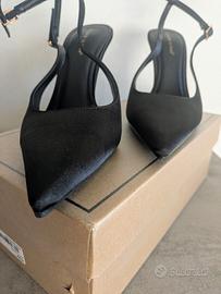 bellissime scarpe col tacco nere, eleganti e sofisticate, perfette per cerimonie, eventi o una serata speciale. Il tessuto in stoffa lucida (effetto satin) dona un riflesso molto chic che non passa inosservato. Caratteristiche principali: Condizioni: Nuove, mai usate. Arrivano nella loro confezione originale. Taglia: 39. Colore: Nero profondo con finitura lucida. Tacco: 10 cm (tacco a stiletto slanciato ma stabile). Design: Punta sfilata e cinturino regolabile alla caviglia per una camminata sicura. Comfort: Nonostante l'altezza, la calzata è studiata per essere comoda e avvolgente. Scarpa versatile: perfetta sotto un abito elegante o per impreziosire un paio di jeans skinny e un blazer. Raffinate: Perfetto per chi cerca qualcosa di classe superiore. Impeccabili: Sottolinea che non hanno un graffio e sono come da negozio. Minimal: Uno stile pulito che va sempre di moda. Must-have: Fa capire che è un pezzo base che non può mancare nell'armadio. Slancianti: Grazie al tacco da 10 cm e alla punta, valorizzano molto la figura. Satinate: Descrive meglio la "stoffa lucida" rendendola più pregiata. Intramontabili: Un modello che non passa mai di moda. Laccetto a doppio giro caviglia. #heels #tacchi #decollete #scarpefemminili #shoes #calzature #tacco10 #slingback #scarpenere #blackheels #satinshoes #size39 #numero39 #cerimonia #wedding #partylook #serata #elegant #lookformale #minimalchic