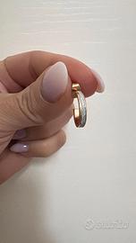 Aggiungi un tocco di luce e raffinatezza al tuo look con questa bellissima coppia di orecchini a cerchio! 😍 Design Unico ed Elegante: Questi orecchini combinano la calda tonalità dell'oro rosa con una luminosa fascia centrale di glitter argento. Un contrasto super chic e moderno, perfetto sia per il giorno che per la sera. ✨ Qualità e Dettagli: Realizzati in metallo color oro rosa lucido, i cerchi sono ben rifiniti e leggeri da indossare. La striscia glitterata è densa e cattura la luce ad ogni movimento, creando un effetto brillante e testurizzato. Pratici e Sicuri: Il design "a scatto" (huggie style) li rende facilissimi da mettere e togliere, offrendo al contempo una chiusura sicura per tutta la giornata. Nelle foto puoi vedere anche i perni e la parte posteriore. Condizioni Perfette: Come nuovi! Praticamente mai indossati, sono in eccellenti condizioni, puliti e pronti per essere sfoggiati. #orecchini #goldrose #argento #glitter #brillantini #cerchietti #fashion #gioielli #donna #accessori #chic #brillante #luxury #ootd #regalo #vinteditalia #occasione