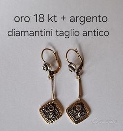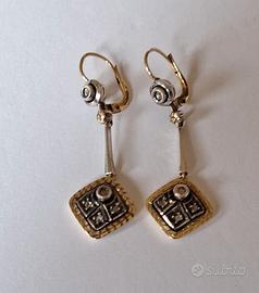 Da collezione privata, vendesi orecchini originali anni '40 realizzati in argento e oro antico 18 kt - classica lavorazione artigianale italiana - incastonate diamantini bianchi a taglio antico - le foto pubblicate si riferiscono esclusivamente agli oggetti realmente in vendita - non esitate assolutamente a contattarmi per richiedere ulteriori particolari o foto piu' dettagliate degli oggetti in vendita - trattasi di trattativa tra privati, quindi con la regola " visto e piaciuto "