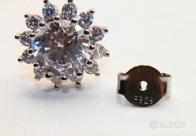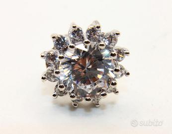 Questi splendidi orecchini a punto luce incantano per la loro straordinaria brillantezza e per un design classico a raggiera che richiama l’eleganza intramontabile dei gioielli d'alta gamma. Realizzati in pregiato argento Sterling, come confermato dal punzone 925 impresso sulle chiusure a farfallina, ogni orecchino presenta al centro una magnifica pietra CZ dal taglio brillante di generose dimensioni, capace di riflettere la luce con un’intensità magnetica. La pietra centrale è sapientemente circondata da una corona di zirconi più piccoli che amplificano la luminosità complessiva dell'accessorio, creando un suggestivo effetto a fiore dal diametro di 11 mm. La montatura a griffe, rifinita con estrema cura, assicura non solo la massima stabilità delle gemme ma permette anche un passaggio ottimale della luce attraverso ogni sfaccettatura. Perfetti per illuminare il volto in ogni occasione, questi orecchini rappresentano il connubio ideale tra la raffinatezza del design vintage e la lucentezza contemporanea, offrendo un tocco di lusso discreto e sofisticato a chi li indossa.