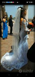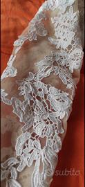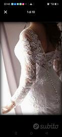 Vendo incantevole abito da sposa con silhouette a sirena, ideale per chi cerca un look elegante, romantico e senza tempo. L’abito è caratterizzato da un pregiato pizzo floreale che ricopre interamente il corpetto e le maniche lunghe, creando un raffinato effetto "tattoo" sulla pelle.