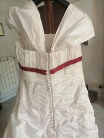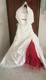 Vendo magnifico abito da sposa realizzato interamente su misura da un Atelier di alta sartoria. Si tratta di un capo unico ed esclusivo dal valore originale di 6.000 € pensato per una sposa che cerca un eleganza classica ma con un tocco audace e di grande personalità. L’abito realizzato in taffettà e tulle che crea un bellissimo gioco di drappeggi sul corpetto. Presenta spalline morbide e rimovibili e una raffinata fila di bottoncini sulla schiena. Il punto vita è sottolineato da un delicato nastro rosso che anticipa il vero colpo di scena di questo modello: una voluminosa e scenografica gonna in tulle rosso fuoco che fa capolino dalla gonna bianca asimmetrica creando un contrasto cromatico mozzafiato ad ogni passo. Inclusa nel prezzo c’è anche l’elegante stola scaldacuore abbinata, per la cerimonia (visibile in foto). Dettagli dell’abito: - Valore di acquisto 6.000€ - Prezzo di vendita 1.500 € - Condizioni: usato solo per il giorno del matrimonio. L’abito è già stato lavato e ingenizzato in lavanderia specializzata. Nessun difetto