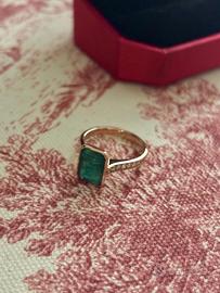 - Pietra Principale: Uno splendido smeraldo taglio emerald dal peso stimato di 3.42 carati, di origine zambiana, con un bel colore verde trasparente.