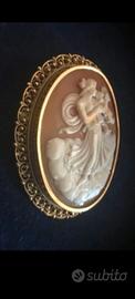 Un Cameo di rara Bellezza. Perfettamente lavorato su di una conchiglia di un colore ed una bellezza unici... Lavorazione perfetta ed accurata nei minimi particolari. Molto raffinata anche la lavorazione dell'oro 18 kt. Il tutto rende questo Cameo un Gioiello Splendido. Può essere indossato come ciondolo o come spilla.