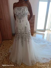 Splendido vestito da sposa impreziosito da ricami e punti luce tg. 42