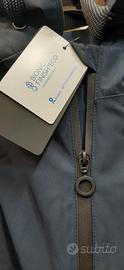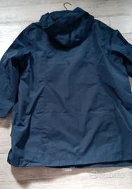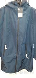 Spolverino da donna NUOVO angora con cartellino, ideale per proteggersi dalla pioggia. - Chiusura con zip frontale. - Cappuccio integrato. - Tasche laterali con zip. Colore blu scuro Taglia 50/52
