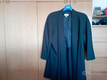 Vendo per inutilizzo bellissimo spolverino di colore nero a tinta unita, con fodera dello stesso colore,dal taglio classico e comodo di pura lana vergine il tessuto è molto morbido con tasche laterali è lungo 97 cm. La taglia è la XXL.