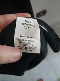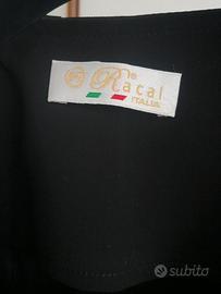 spolverino nero maniche a 3/4 con risvolto chiuso al collo solo con un bottone gioiello TG.46