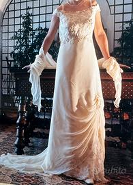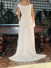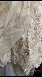 Abbassato prezzo!Abito da sposa. Foto indossato Svendo!Colore crema beige. Decorato davanti come in foto. Piccole spalline. Bottoni con asole per chiudere la schiena. Una sola asola si è allentata. Lungo strascico, arriva ai piedi se altezza persona 1,62. Misura una 44 . Consegna anche a mano zona Milano. Spedizione in un giorno!!! Di sartoria quindi possibile modifiche si possono fare! Costo veramente al di sotto del valore! Ma non lo uso più!!