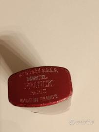 Elegante spruzzatore di profumo da borsetta in metallo laccato rosso marcato Marcel Franck Paris ,la ditta che produce atomiseurs per profumi dal 1882.L'articolo in vendita è alto cm.8,sezione rettangolare con spigoli smussi,c'è qualche lieve difetto di colore sul bordo superiore.e inf. ma per il resto è in ottime condizioni senza graffi né ammaccature. Sul fondo sono presenti il marchio ed il numero di brevetto.Epoca 1980 circa.