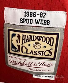 Maglia originale Mitchell & Ness, versione Swingman, di Spud Webb degli Atlanta Hawks della stagione 1986/1987. Usata in ottime condizioni. Taglia L, misure 78x57