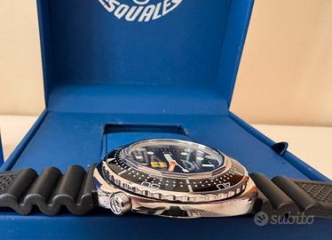 Squale 101 Atmos 2002A Technisub prototipo realizzato in una dozzina di esemplari e mai entrato in produzione. Cassa acciaio 44mm e inserto ghiera sono piu' sottili del 101 Atmos attuale e la valvola ad elio è posizionata tra le 10/11. Diver 1000m Calibro eta 2824. Orologio super corredato e in condizioni eccellenti. Scatola controscatola garanzia italia libretto Bracciale Mesh originale Squale, Tropic Seacult, Tropic Rally con Fibbia Squale, Cinturino gomma Wave Bonetto. Spedizione assicurata da concordare Dichiaro che l’orologio è originale in tutte le sue parti