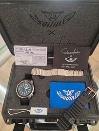 vlVendo causa inutilizzo Squale 1521 Limited Edition (90 pz) by Chronofactum Orologio pari al nuovo, indossato solo per fare le foto, condizioni 10/10 e ovviamente zero hairlines. Completo del sul bracciale satinato (no blasted), del rubber tropic e di un cinturino aggiuntivo in gomma Particolare di questa versione no data (calibro Sellita SW200) sono gli indici bianchi invece del solito verdino dei 1521 classici. Orologio ovviamente ancora in garanzia e completo di tutto, compreso il box personalizzato Chronofactum. Non accetto permute. A causa delle numerose truffe spedisco solo con Corriere a spese dell'acquirente dopo aver ricevuto bonifico. Preferirei però la consegna a mano a Verona presso mio istituto bancario, con pagamento contanti o bonifico.