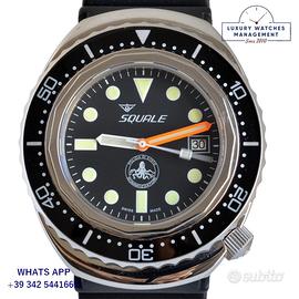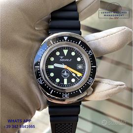 Orologio Squale originale in ogni sua parte, molto raro assegnato al sommozzatore militare, prodotto in serie limitata di soli 230 esemplari, in ottime condizioni come nuovo, segni di usura assenti o appena visibili, full set (scatola, accessori vari, garanzia card ufficiale Squale), garanzia/dichiarazione di vendita nostro negozio valida per 12 mesi.