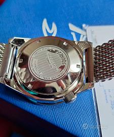 Squale Matic Light Blue Mesh MATICXSE.ME22 44,00 mm Orologio in condizioni di pari al nuovo – no segni – no strisci – no imperfezioni Squale Matic Light Blue Mesh MATICXSE.ME22 44,00 mm – Diver Professionale - quadrante color azzurro - lunetta bicolore azzurra-bianca in ceramica - cassa da 44 mm realizzata in Acciaio 316 L - con fondello a vite e corona vite - spessore di 16 mm –finitura interamente lucida – movimento a carica automatica calibro Sellita SW 200-1 con una riserva di carica di 38 ore - vetro zaffiro bombato con trattamento antiriflesso - indici applicati e rifiniti con supernova C3 che garantisce massima visibilità anche senza luce – Impermeabilità 60 atmosfere (600mt) - bracciale mesh in acciaio lucido con larghezza ansa 22 mm e larghezza fibbia 22 mm. Scatola e garanzia ufficiali Squale – Valore di listino euro 1670 Condizioni di pari al nuovo Cortesemente evitate proposte assurde – non rispondo Evitiamo entrambi di perdere tempo inutilmente