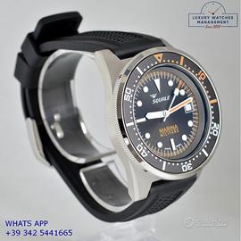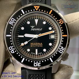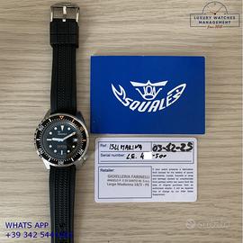 Orologio Squale originale in ogni sua parte, mai indossato, nuovo e senza segni di usura, full set (scatola, accessori vari, garanzia card ufficiale Squale valida per 2 anni), garanzia/dichiarazione di vendita nostro negozio valida per 12 mesi.