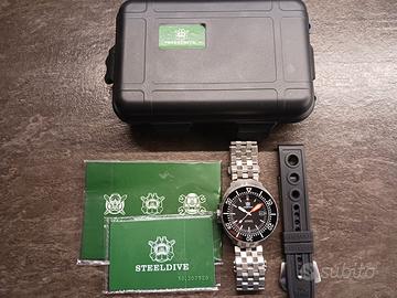 Orologio automatico calibro NH35 Cassa monoblocco 45mm, ghiera ceramica, corona a vite, diver 1000mt, riedizuone Omega LeGrand Plo prof Bracciale acciaio originale , ansa 22mm e cinturino gomma nero Steeldive Full set, ottimamente tenuto Spedisco solo dopo bonifico (+20euro TNT), no tuttosubito Non valuto scambi o permute Seiko Citizen Hamilton Glycine Tissot Casio