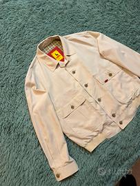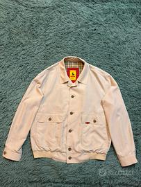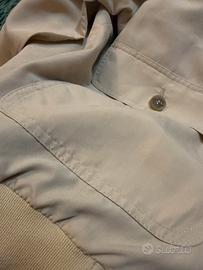 Giacca leggera primaverile Steinbock Vintage, colore beige chiaro (panna), taglia 52(che corrisponde a una misura L-XL, da vedere foto con misure), tessuto:70% modal, 30 % poliestere. Chiusura a bottoni loggati, due tasche, una tasca all' interno. Giacca bellissima, alta qualità del tessuto modal. Unico difetto, piccoli segni di macchie in zona tasca destra, poco notabili (da vedere ultima foto). Lunghezza 68 cm. Da ascella a ascella 60 cm. Spalle 55 cm. Manica 64 cm.