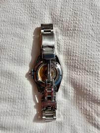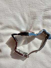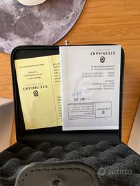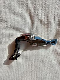 Vendo Steinhart Ocean 39 GMT 500 Premium, orologio automatico GMT in ottime condizioni generali, ideale sia come diver professionale da 500 metri sia come orologio sportivo per uso quotidiano. Si tratta di un modello Swiss Made con movimento Sellita SW 330 grado élaboré. (caller GMT), molto apprezzato per affidabilità e solidità costruttiva. L’orologio monta attualmente una ghiera ceramica Pepsi (blu navy/rosso, come il Rolex GMT Master mk3) realizzata da Steinhartmods, con indici luminosi BGW9 a emissione blu, particolarmente leggibili al buio. È incluso anche l’inserto ghiera originale Batman (nero/blu), che presenta una piccola scheggiatura ad ore 12 ma resta perfettamente utilizzabile come alternativa. La cassa in acciaio inox da 39 mm è abbinata a vetro zaffiro antigraffio e antiriflesso, e garantisce impermeabilità fino a 500m (50 ATM), rendendolo un vero orologio subacqueo. La corona è a vite e la ghiera girevole unidirezionale completa la configurazione tipica di un diver di alta qualità. Il bracciale oyster in acciaio, con perni a vite, assicura robustezza e facilità di regolazione. Sono incluse maglie e mezze maglie aggiuntive per una vestibilità precisa, aiutata dalle misure snelle del bracciale (20/16 mm). Corredo completo: scatola originale, documenti, bracciale completo e inserto ghiera originale incluso. Spedizione con TuttoSubito. Posso valutare scambi (a mano) con altri diver e GMT, sia di marche come Squale, Seiko Prospex, Glycine Combat Sub, Citizen Promaster, sia microbrand (Helm, Christopher Ward, Zelos, etc). NON sono interessato a pezzi vintage.