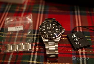 L'orologio è in perfette condizioni, tenuto in modo maniacale e indossato pochissimo, è stato acquistato nel 2018 ma è pari al nuovo. Comprensivo di scatola originale, garanzia e fattura di acquisto, è stato revisionato presso Mastro Orologiaio che mi ha fornito la propria garanzia di 12 mesi sul suo corretto funzionamento. Dopo averlo testato una settimana registra uno scarto giornaliero di + 4.5 / + 5 secondi al giorno.