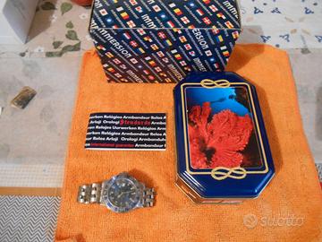 Vendo orologio Stendardo Immersion Sport 300 by Enzo Maiorca praticamente quasi nuovo, anno 1998 con libretto garanzia, movimento al quarzo svizzero e batteria nuova. Fondo blu, 40 mm di cassa, con scatola, contro scatola, cinturino in acciaio e due cinturini nuovi originali uno di pelle e uno in caucciù. Set completo.