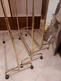 vendo n.3 stender per abbigliamento in metallo dorato . 2 pz.con dimensioni larghezza 100cm e altezza regolabile min.123cm max 193cm e 1pz larghezza 100cm altezza fissa 140cm.